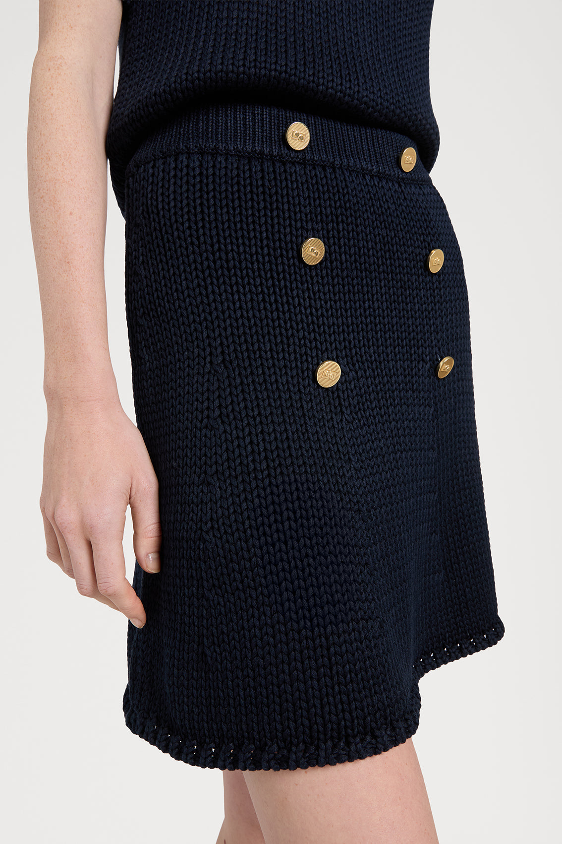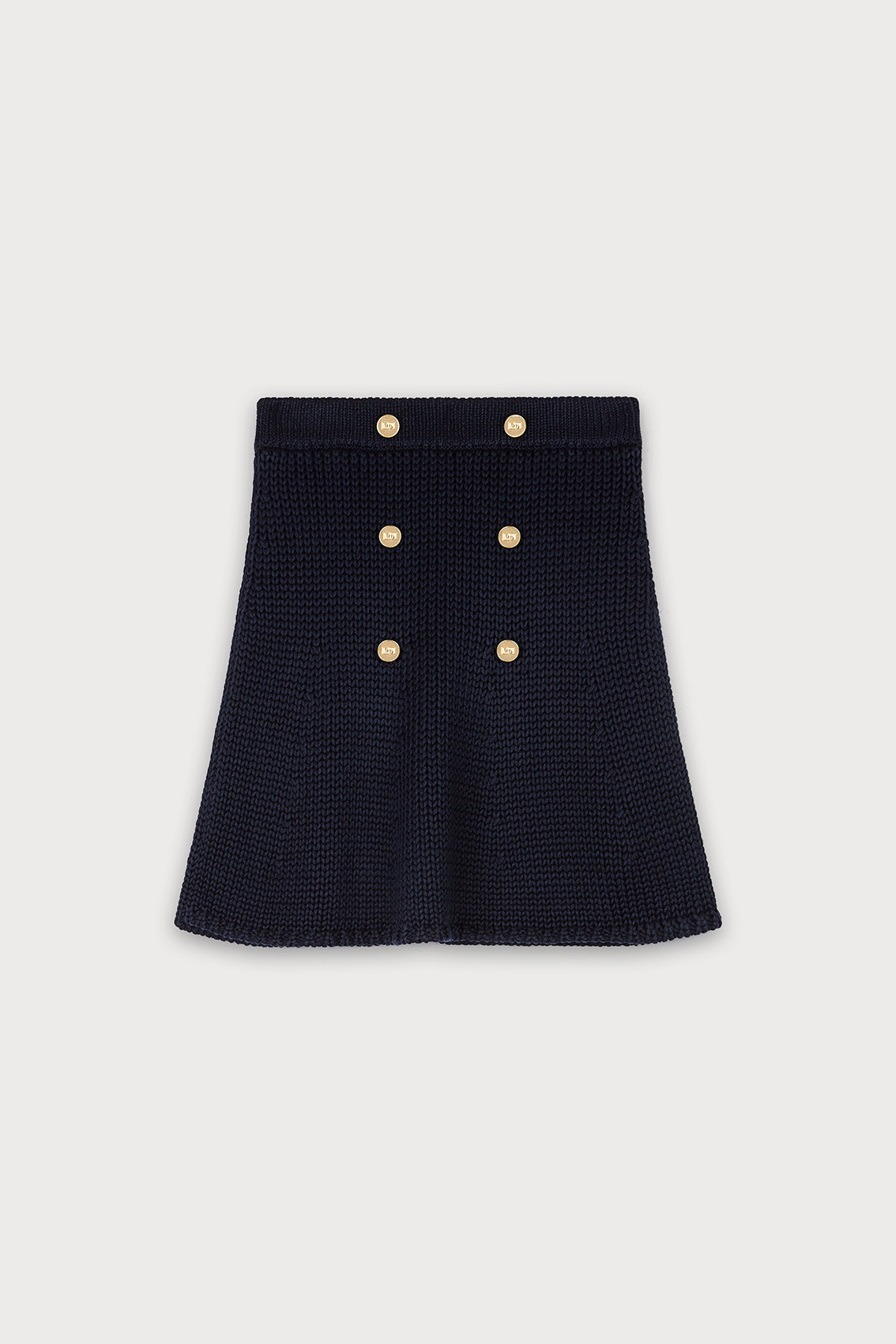 BUTTONED KNIT MINI SKIRT IN NAVY