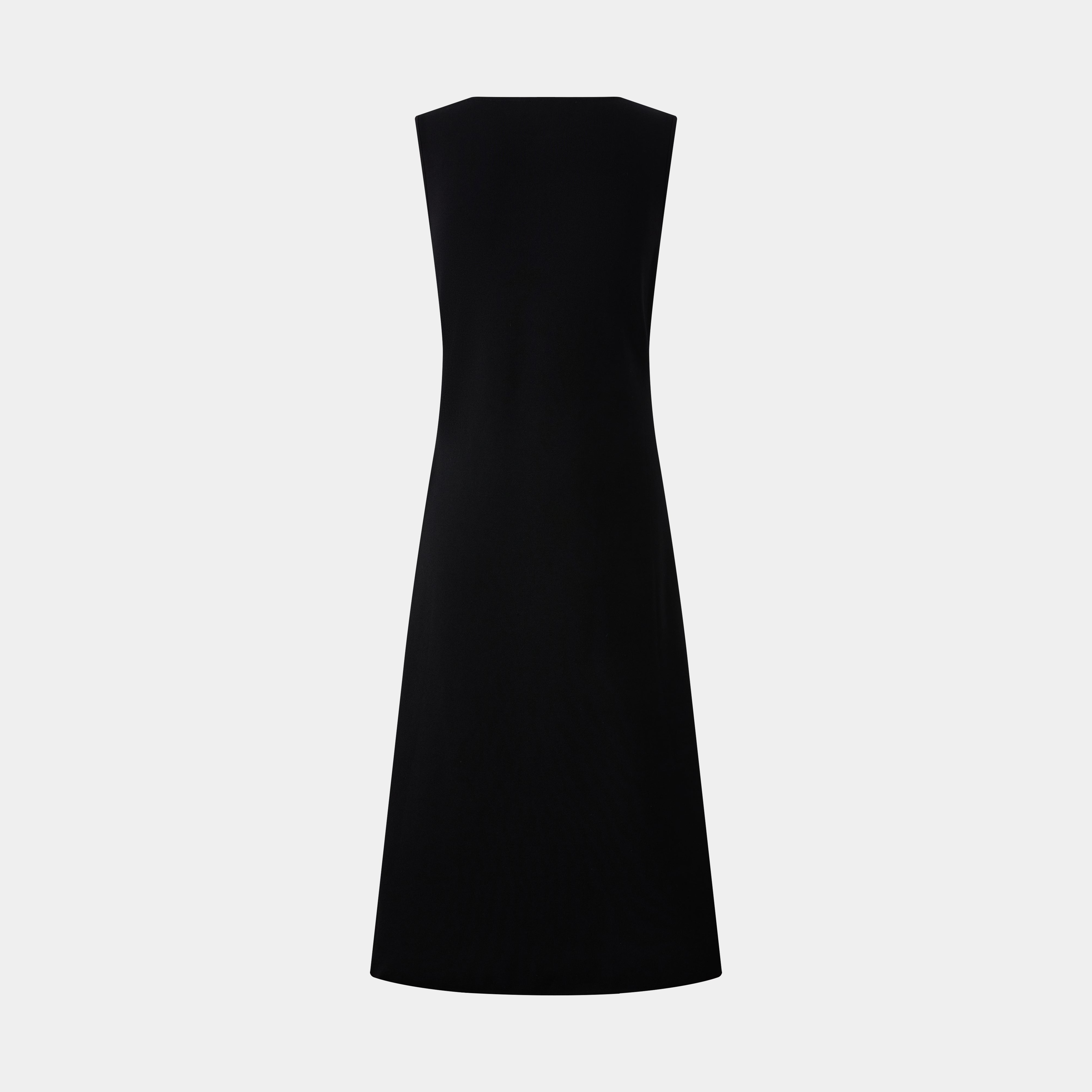 Sleek sleeveless midi dress featuring a deep V-neckline with a distinctive patterned insert. This elegant piece offers a modern silhouette, perfect for sophisticated occasions.