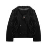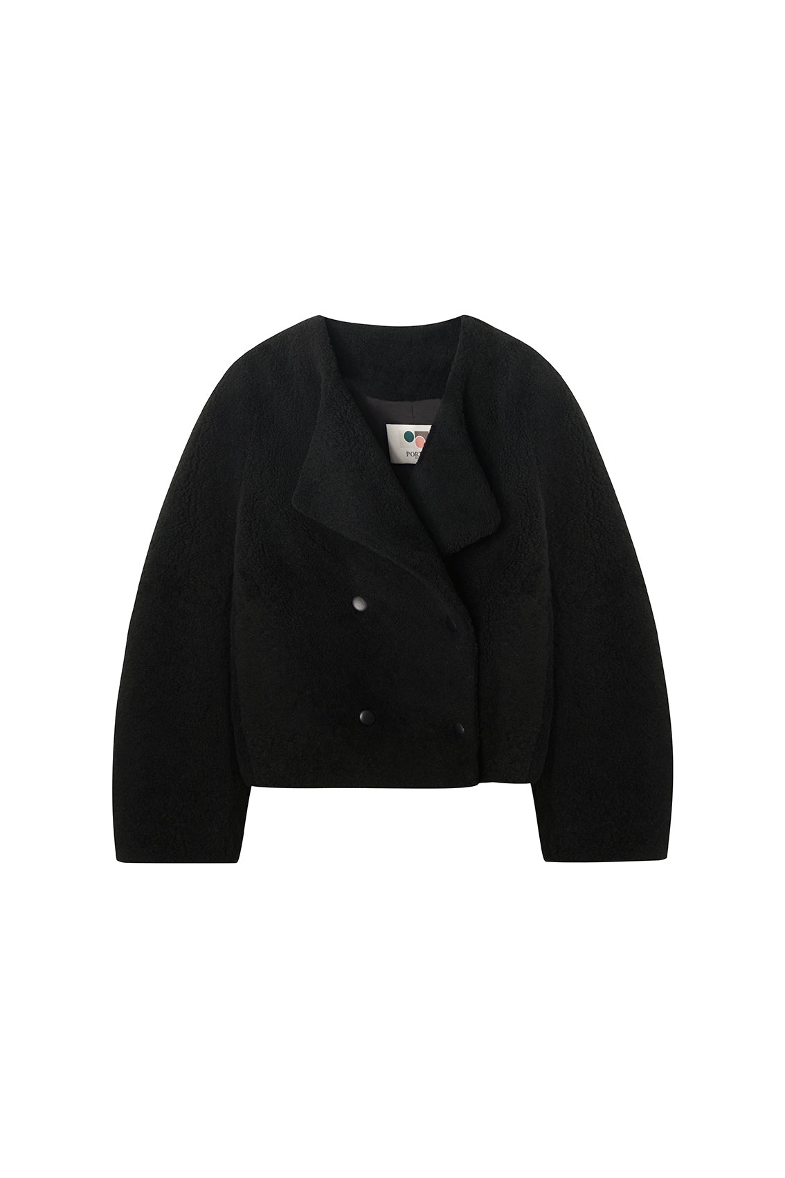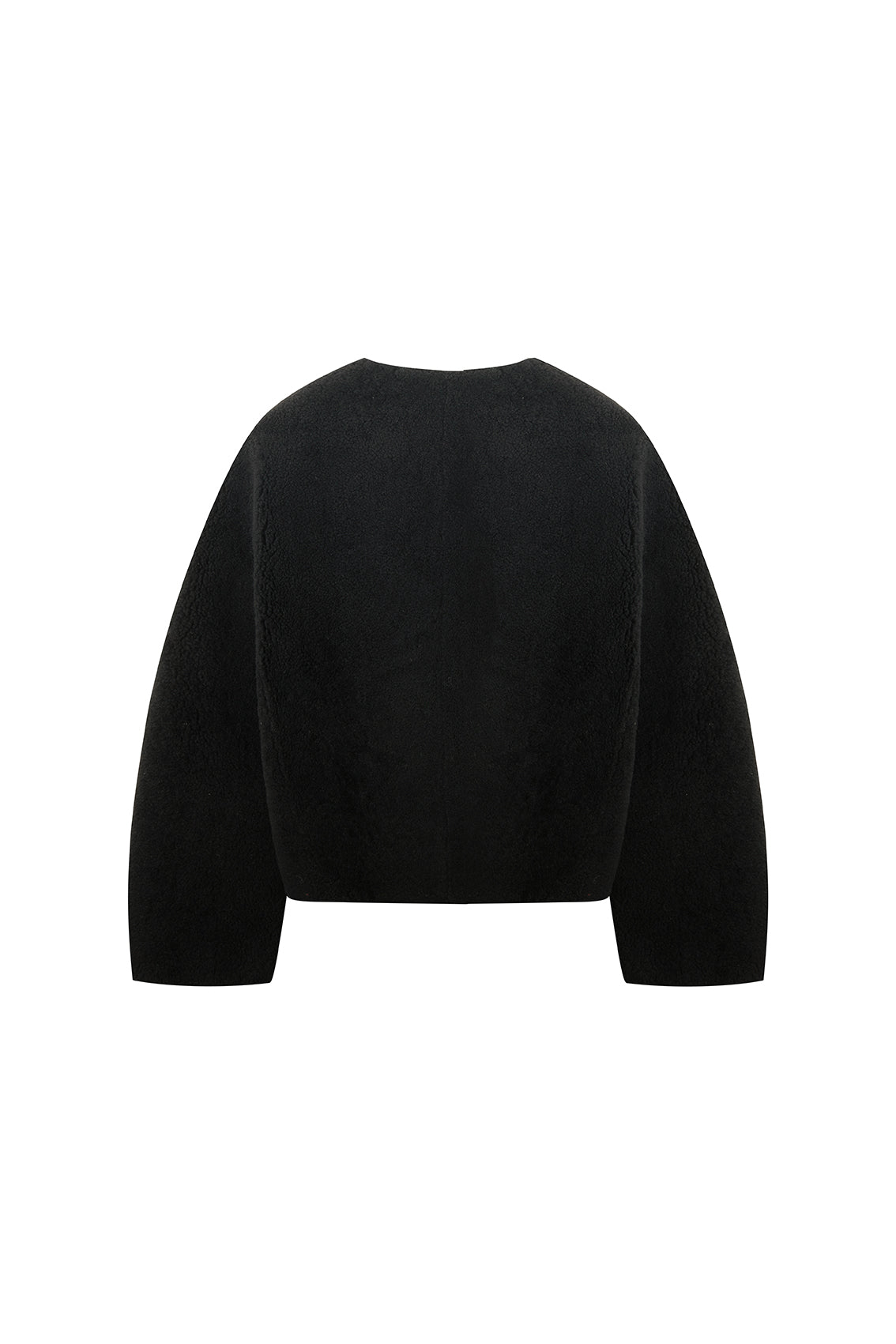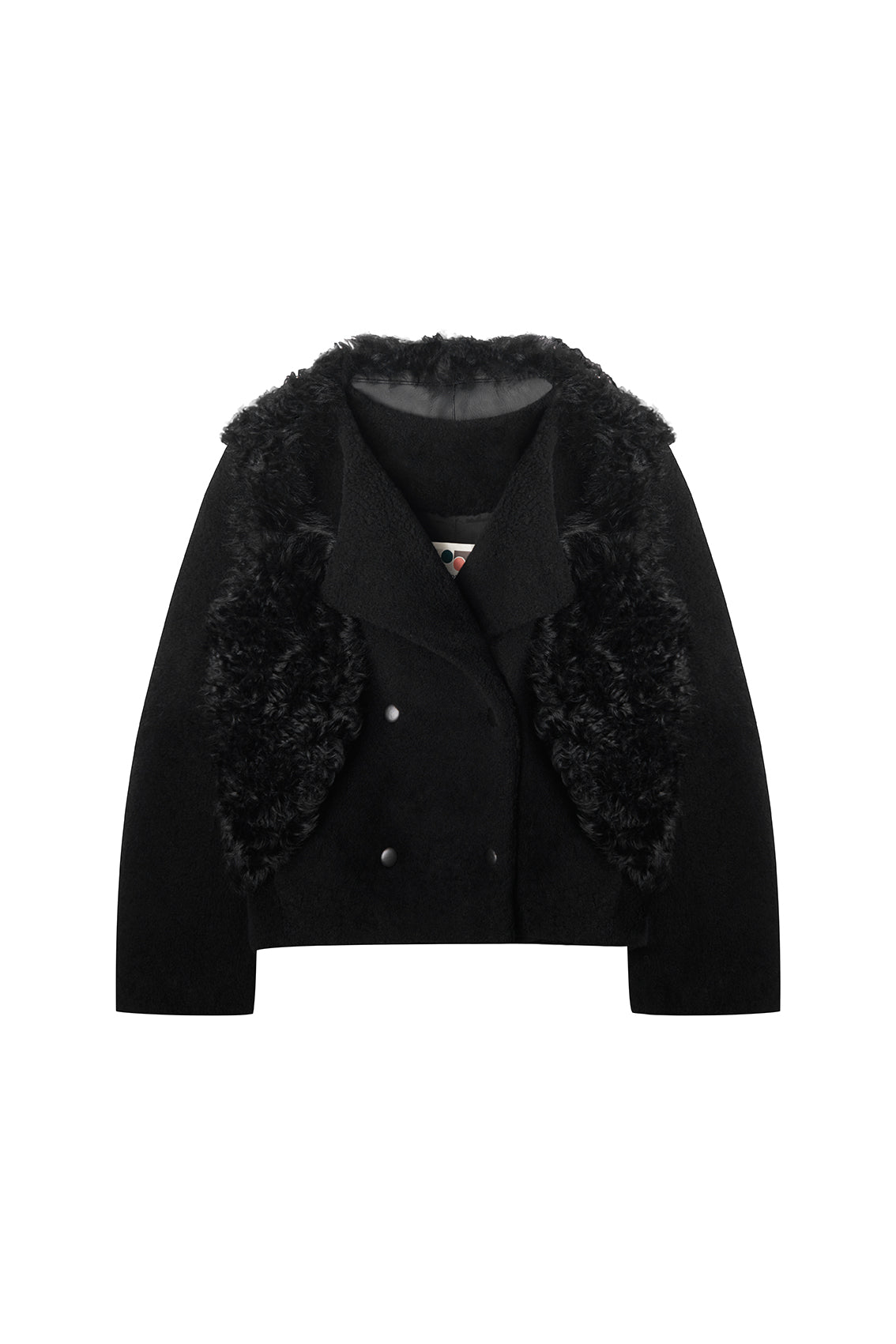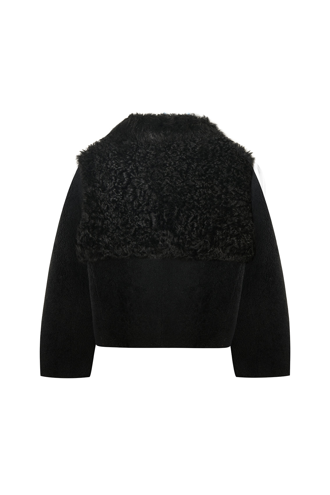 Elevate your fall-winter wardrobe with this luxurious black woolfell jacket, featuring a plush fur collar for warmth and refined elegance - an essential choice for chilly days.